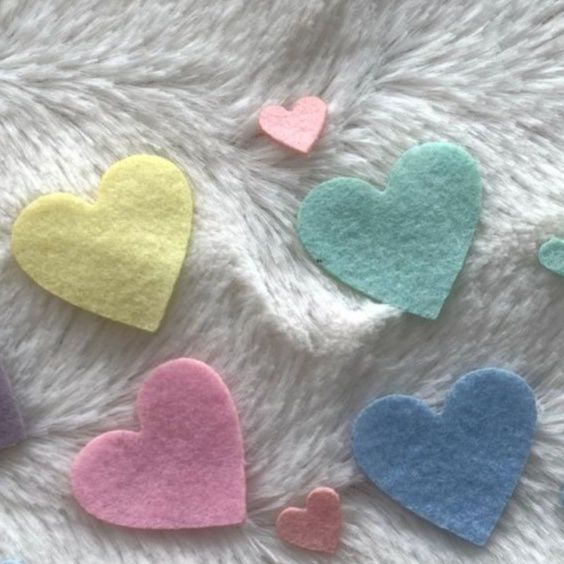 Recorte de corações em feltro.