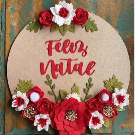 Kit de flores , folhas e feliz natal para utilização em quadros, guirlandas, bastidores de até 30 cm de diâmetro.
